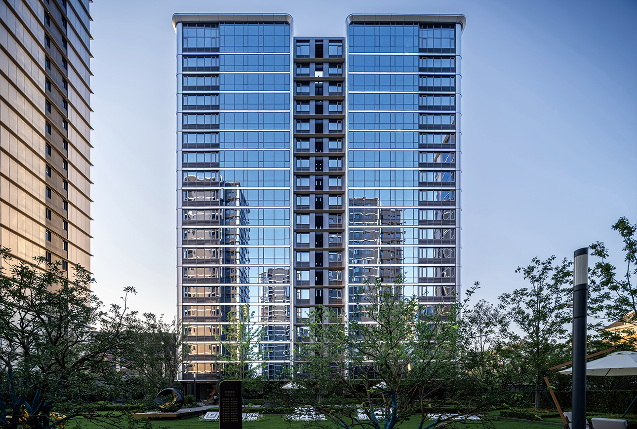 高层住宅及配套用房采用现代简约风格,立面造型尊重自然与人文,以简练明快的手法呈现亲切大方的建筑气质。低层住宅则回归中式古典,重溯江南建筑之纯粹:四方飞檐、白墙黛瓦、花木篱墙、明月影壁,将“素、雅、淡、逸”的色调融于传统元素之中。中式宅院与园林浑然一体,集山水、街巷、田园、庭院、礼制、园林意境于一园,成就宅园合一的东方理想居境。